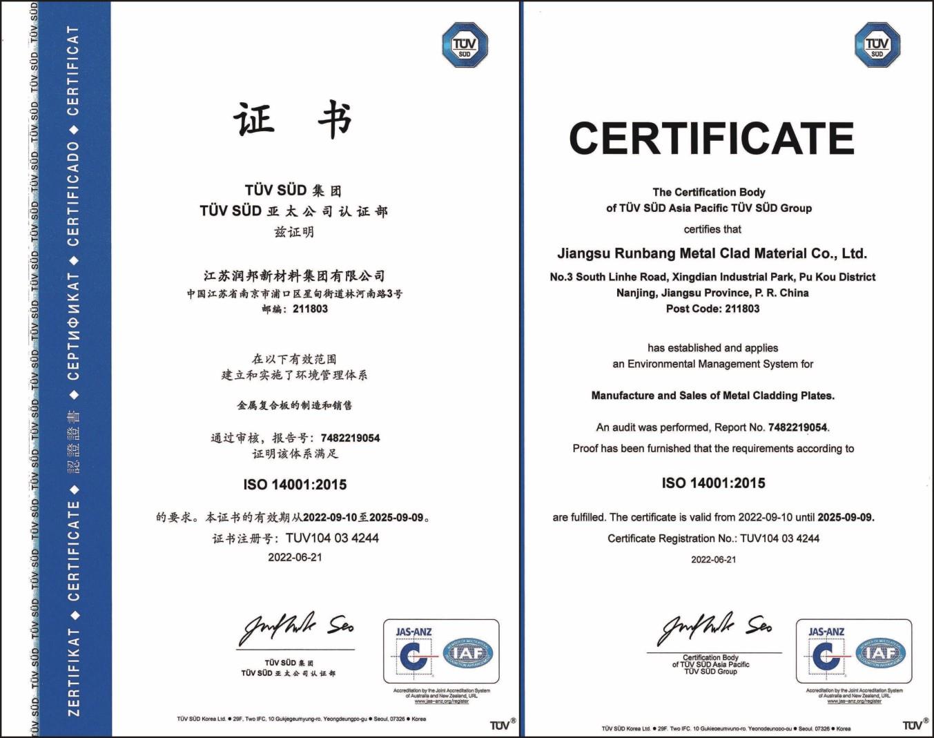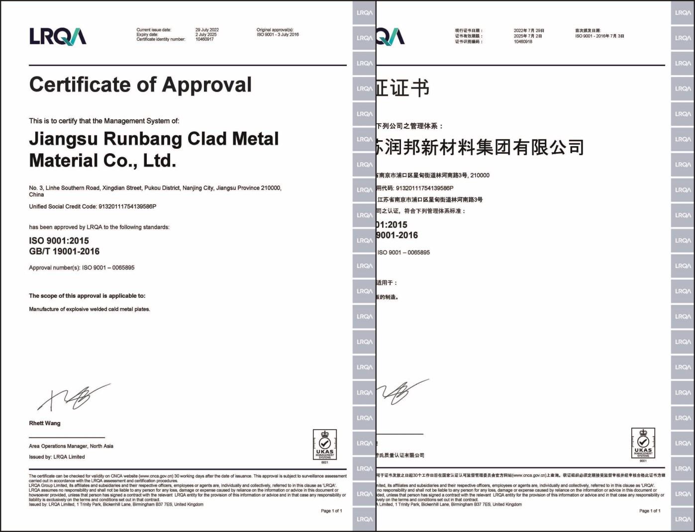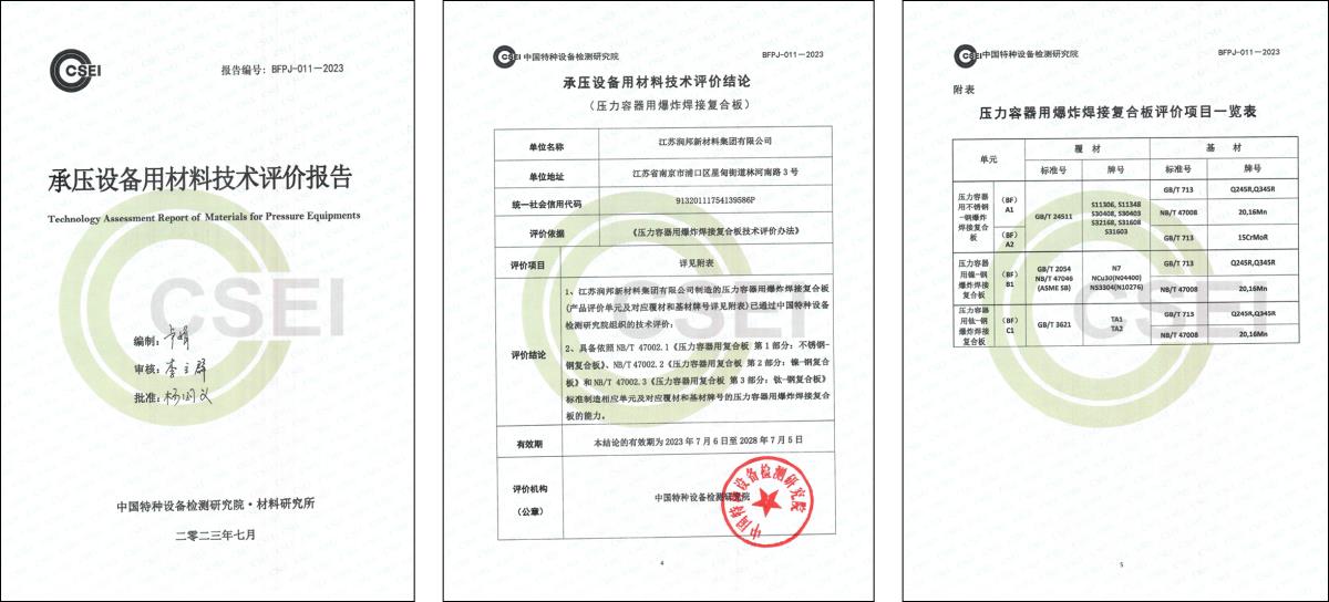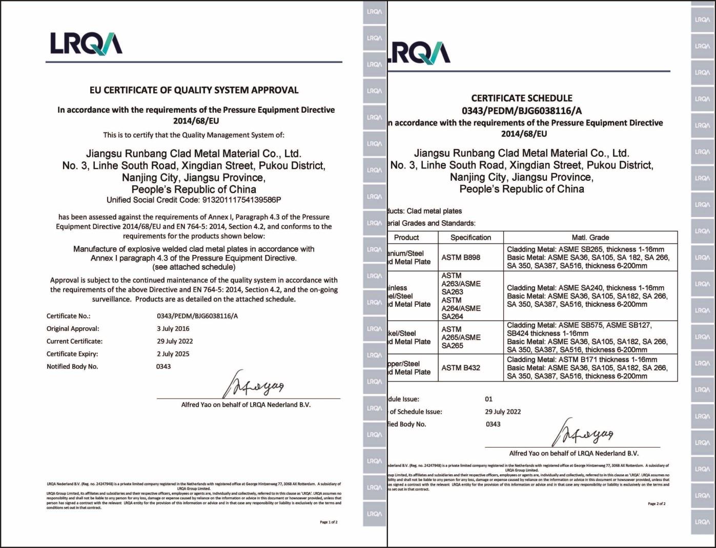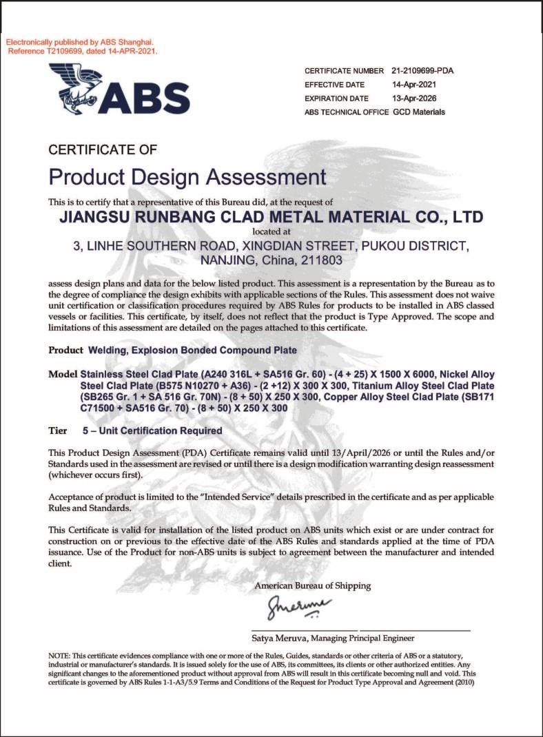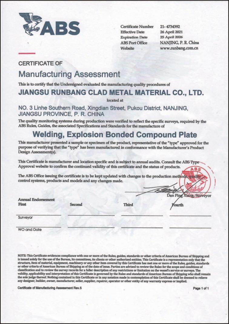 ABS-PDA | 鄧白氏證書 | 壓力容器用爆炸復(fù)合鋼板產(chǎn)品安全注冊(cè)證書 | |